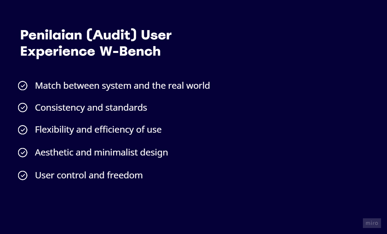 Dalam UX Audit ini terdapat 5 point penilaian yang dilakukan dan untuk ditingkatkan