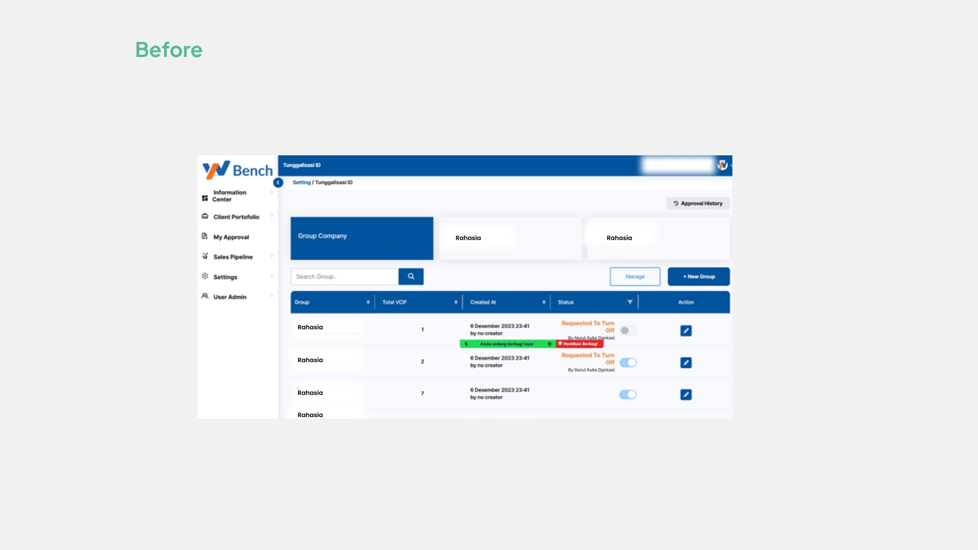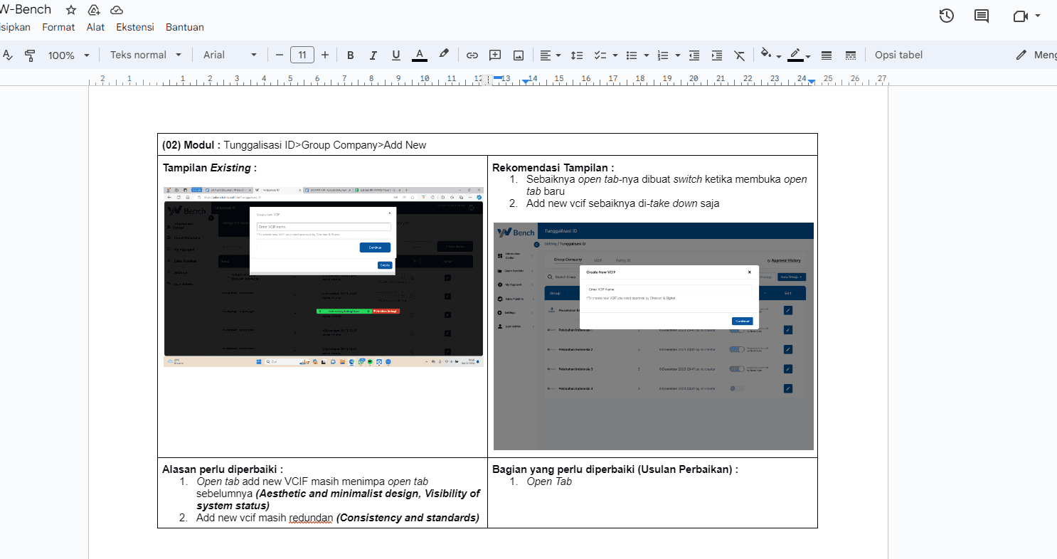 W-Bench merupakan aplikasi untuk monitoring credit pada segmentasi wholesale banking Bank Rakyat Indonesia. Project ini adalah melakukan Audit terdhadap aplikasi untuk memberikan pengalaman pengguna yang lebih baik