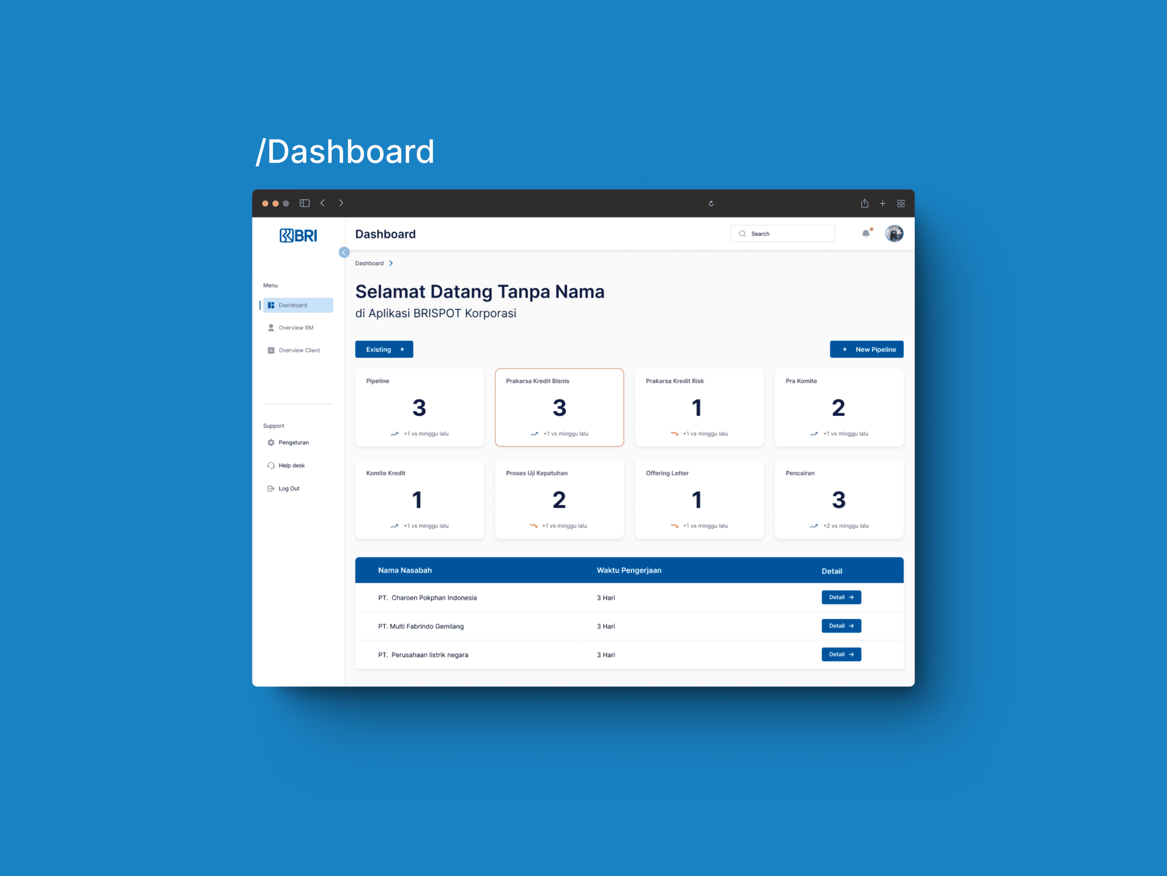 Project ini saya kerjakan saat magang di BRI pada team Wholesale Banking , posisi dan tanggung jawab saya adalah sebagai UI/UX Designer